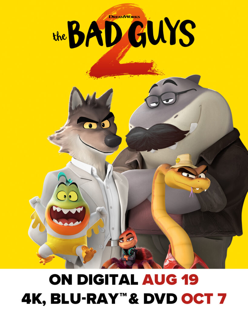 The struggle to be good continues with everyone’s favorite Bad Guys, as they encounter a new challenge from a gang of Bad Girls, in DreamWorks Animation’s newest action-comedy, THE BAD GUYS 2,coming home exclusively on digital platforms to own or rent August 19, 2025 and on 4K UHD and Blu-ray™ on October 7, 2025 from Universal Pictures Home Entertainment. Based on the New York Times bestselling children’s graphic novel by Aaron Blabey, the latest animated adventure takes the Bad Guys to new exciting locations around the world and even further, to outer space! Unveil THE BAD GUYS 2 master plan with over one hour of captivating bonus content showcasing the exclusive animated short “Little Lies and Alibis” as well as never-before-seen features including deleted scenes, hilarious recording booth moments, how to draw character sketch tutorials with filmmakers, and more when you purchase from participating digital retailers nationwide.